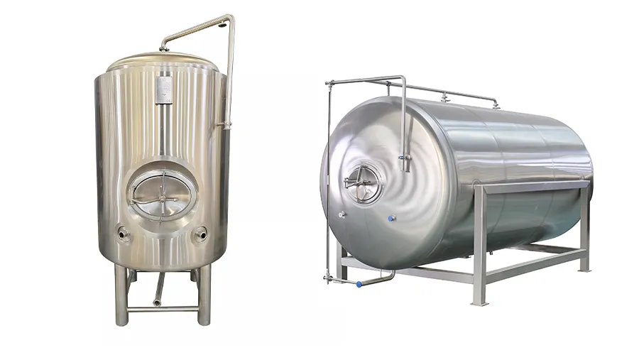 Horizontal and vertical bright beer tanks from 500L to 10,000L — designed for carbonation, clarification and direct serving or packaging.