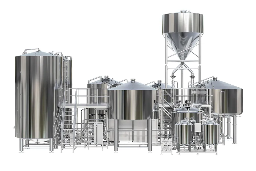 Configuration: 4-6 vessel brewhouse | Steam heating | Full PLC automation with advanced recipe management and remote monitoring